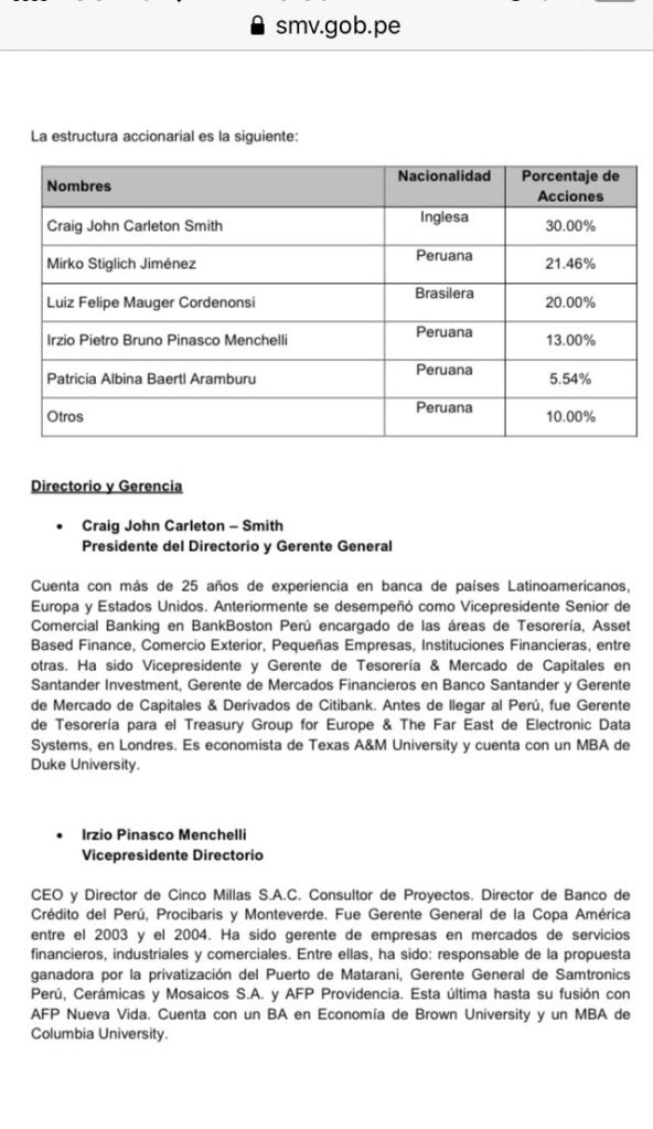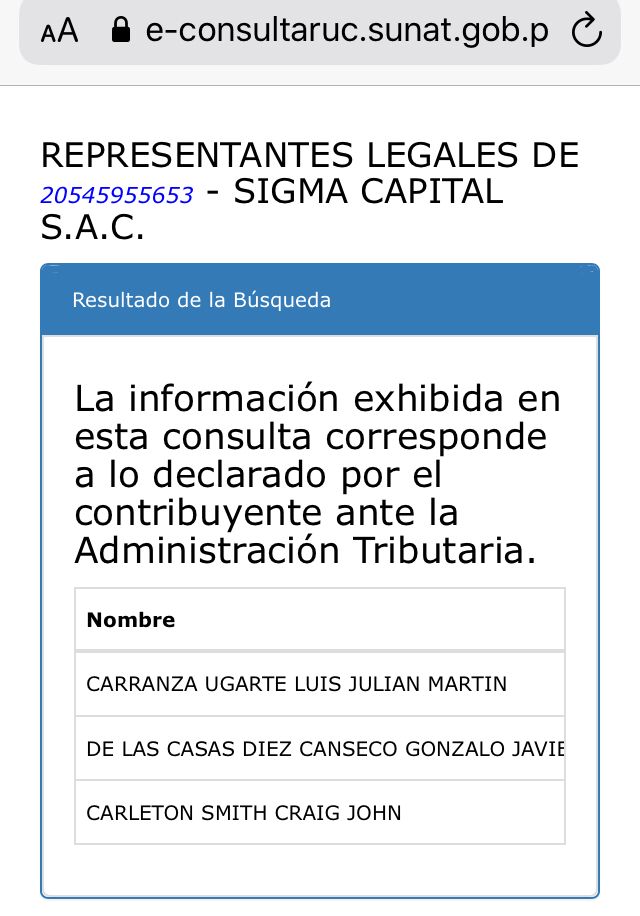 Accionista de Sigma (Irzio Pinasco) es Director del Banco de Crédito, según informe presentado a la Superintendencia de Mercado de Valores, marzo, 2021. Cabe señalar que Sigma maneja el dinero de Prima AFP (Banco de Crédito). Hay conexión directa entre Carranza, Sigma y sus accionistas y el Banco de Crédito.
