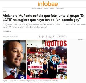 En efecto, hay un grupo de personas opositoras a Alejandro Muñante y de todo lo que representa, que están difundiendo esta imagen como signo de que dicho personaje sería un «gay arrepentido». O sea, alguien que asumió y vivió su orientación sexual alternativa, pero que movido por una ideología religiosa postuló luego que todo lo LGTBIQ+ es la encarnación de lo satánico.