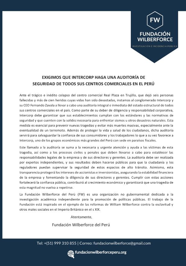 La Fundación Wilberforce del Perú es una organización no gubernamental dedicada a la investigación académica independiente para la promoción de políticas públicas.