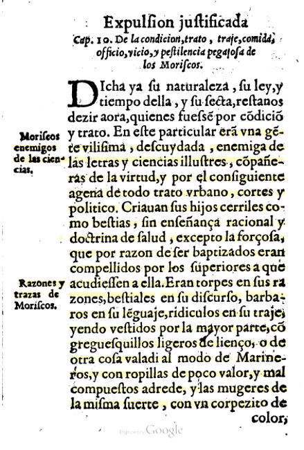 (Fragmento de la Expulsión justificada de los moriscos españoles de Pedro Aznar Cardona, 1628)